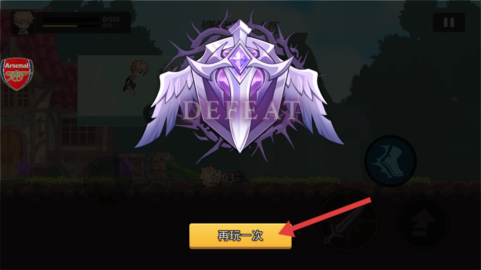 游戏失败后点击【再玩一次】按钮重新挑战,通过不断积累经验来提升游戏表现。