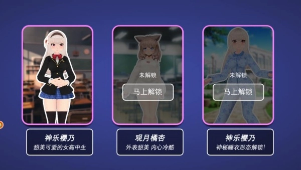 一开始只有角色神乐樱乃可以免费获取,完成相应任务后,才能解锁更多其他角色。