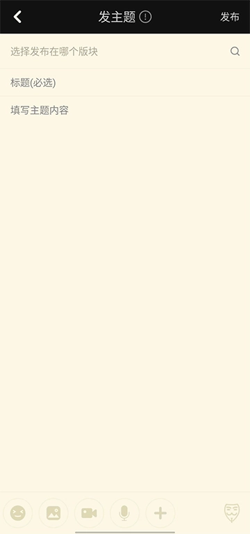 接下来选择好要发布的板块、标题和主题内容,填写完成后点击右上角的“发布”按钮就可以了。