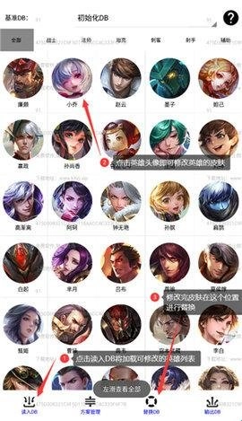 点击“读入DB”按钮会加载可编辑的英雄列表,点击英雄头像就能修改该英雄的皮肤,后续皮肤修改操作将在此处完成替换。