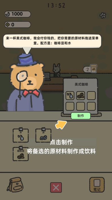 尝试用原材料进行搭配组合,创造出丰富多样的饮料,让各位勇者在神奇的咖啡饮品中沉醉不已。