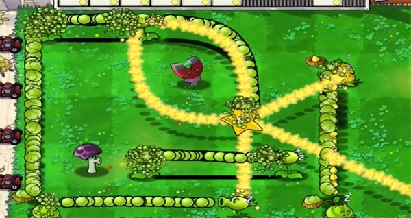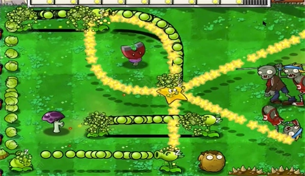 卷心菜投手的攻击轨迹为向上发射,要是其射击轨道上存在其他植物,那么这些植物同样会随之发射子弹。