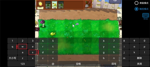 启动游戏后,调出虚拟键盘,使用ws键来操控胆小菇进行上下移动,其中w键对应向上移动,s键对应向下移动。