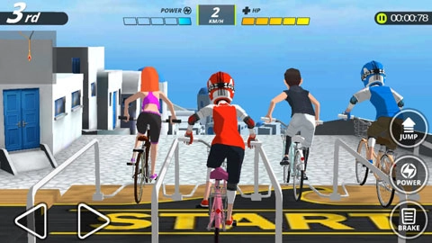 可以借助屏幕上的虚拟按键或手势操作,来操控自行车完成加速、刹车、转向等动作,同时要维持平衡,确保安全通过赛道。