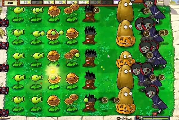 前期先种植向日葵来积累阳光,等阳光足够了,就在僵尸会经过的路径后方放置豌豆射手这类攻击性植物,没有僵尸经过的路径就不用浪费资源去布置了。