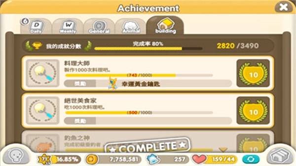 这是属于隐藏的部分,因为他把料理成就划分为了100次、500次和1000次这几个等级。