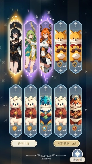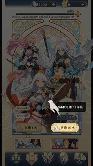 1、进入游戏后系统会自动赠送十连抽福利,您只需点击界面上的“召唤”按钮,即可开启抽卡环节。