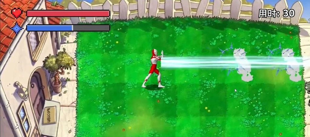 在游戏里化身光之巨人,迎战那些一波接一波涌来的僵尸角色
