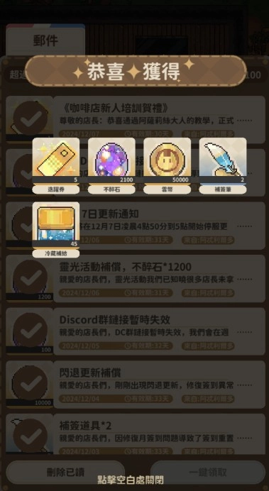 到这一步就可以点开邮件领取大量资源开始快乐抽卡了。