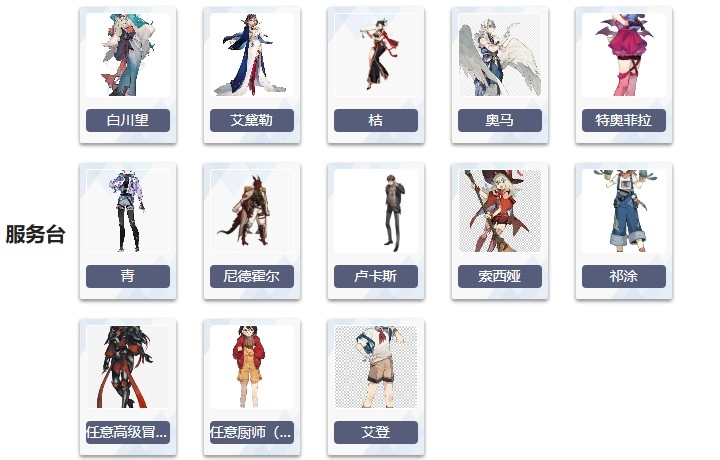 服务台:白川望、艾黛勒、桔、奥马、特奥菲拉、青、尼德霍尔、索西娅、祁涂、艾登