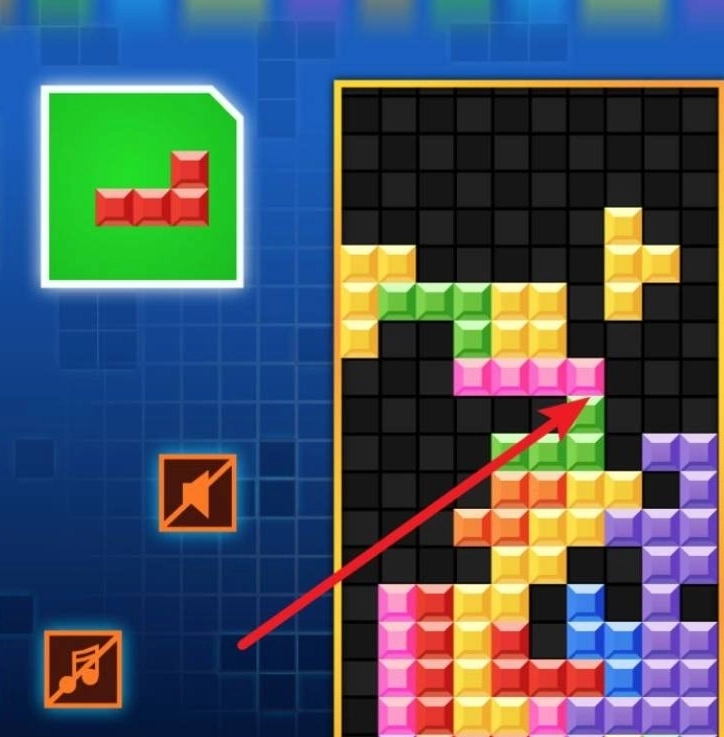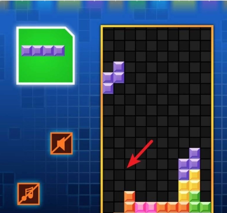 6、条件允许时,我们要尽量把方块摆放整齐,只在最边缘留出一个空隙。这样后续出现竖条方块时,就能直接将其放入空隙,一次性消除四行方块,从而获得更高的分数。