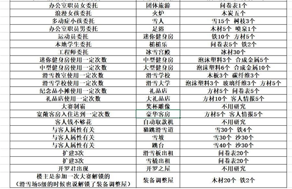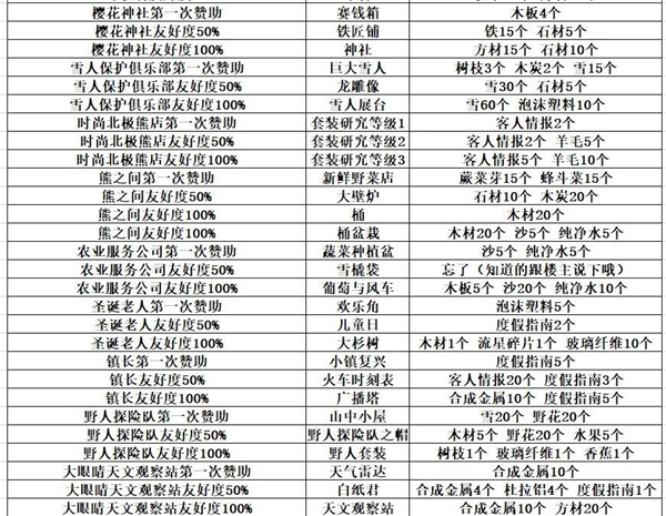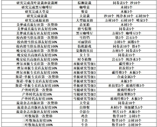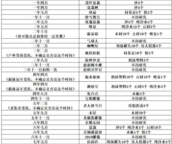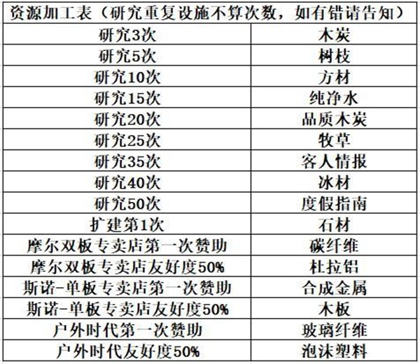 随着新客人陆续来访,赞助商也一个个出现并提升至满友好度,可加工的资源以及研究解锁的设施都会逐步呈现,无需急于一时。(附研究与资源加工表)
