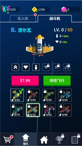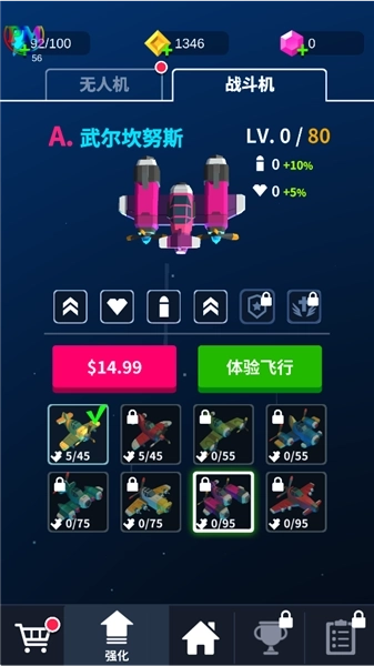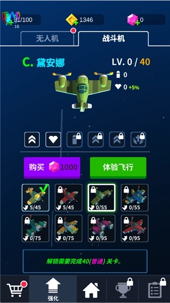 2、多种战斗机与无人机,需通过升级和进化来获取新技能。