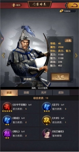 资质提升能显著增加对应属性的数值,因此到了后期,这是提升势力最快捷的方式之一,不过它的花费也最高。这里给出的建议是,强化卷轴应优先用于高属性门客;要是还没获得高属性门客,最好先把卷轴存起来,暂时不要使用,毕竟对于不氪金的玩家来说,强化卷轴是非常稀缺的资源。尤其是武力卷轴,建议集中对一位高属性门客进行强化,四星强化的性价比相对最高,五星和六星强化的失败率较高,不太划算,倒不如通过积累书籍经验来逐步提升属性。