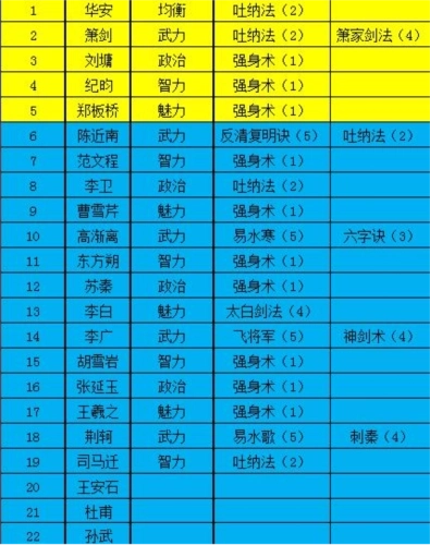 3、属性分配策略:大家都知道,智力、政治、魅力这三项属性分别对应着银两、粮草和兵力的产出。这里建议优先提升智力属性——毕竟有了足够的智力才能获取更多银两,而银两是门客升级的关键资源;门客等级提升后,其四项基础属性(智力、政治、魅力、武力)都会随之大幅增长。不过这并不意味着武力不重要,需要注意的是:武力资质和武力属性是两个不同的概念,角色的战斗力计算公式为“武力资质×5000×等级 + 武力属性”,从公式可以看出,武力属性在总战斗力中占比极低,哪怕是1万点武力属性也只能增加1万战斗力,所以像药丸、红颜这类加成武力属性的途径,实际作用非常有限。如果有宴会兑换药丸的机会,武力药丸其实比较鸡肋,优先兑换智力属性的药丸会更划算。 游戏早期阶段,建议把所有卷轴、书籍经验包都集中用在高长恭身上——毕竟门客等级越高,其资质带来的属性加成效果才会更显著。到了中期,可以将政治、魅力属性的卷轴分配给另外两三个你计划重点培养的门客(比如高渐离,或者其他你喜欢的角色),因为参与衙门玩法时,门客的资质是核心竞争力,所以培养多个高资质门客是必要的;而武力、智力属性的卷轴依旧建议留给高长恭。至于药丸的分配,建议把武力丹给魏征,其余属性的药丸则给第三位重点培养的门客(比如高渐离或你指定的角色),这样分配也是为了优化衙门玩法的表现。另外,从书院、衙门等渠道获得的书籍经验,建议全部用来提升武力资质——这能帮助你在中午的副本挑战中打得更远,获取更多奖励。