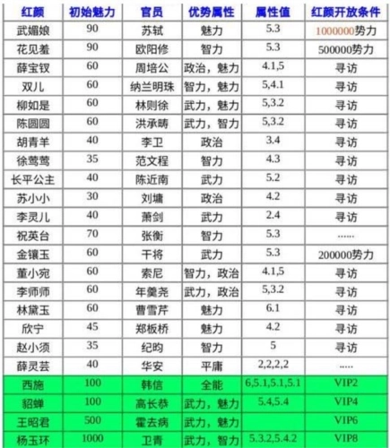 开区重点培养的门客类型,决定了玩家后续需要培养的红颜对象。具体而言,根据VIP等级的差异,培养方向有所不同:VIP3及以下等级的玩家,建议优先培养金镶玉与干将;达到VIP3等级的玩家,可选择培养西施、韩信及更高级别的门客;VIP4至VIP6等级的玩家,推荐培养貂蝉、高长恭及以上门客;VIP7等级的玩家,适合培养王昭君、霍去病及以上门客;而VIP8等级的玩家,则建议培养杨玉环、卫青及以上门客。