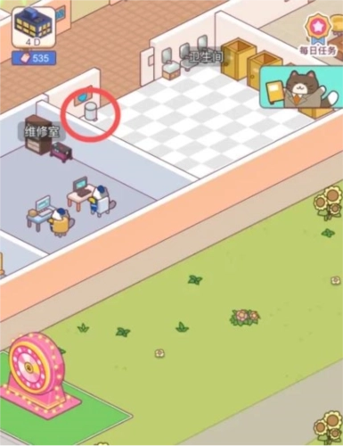 1.先打开游戏进入页面中,点击卫生间的区域