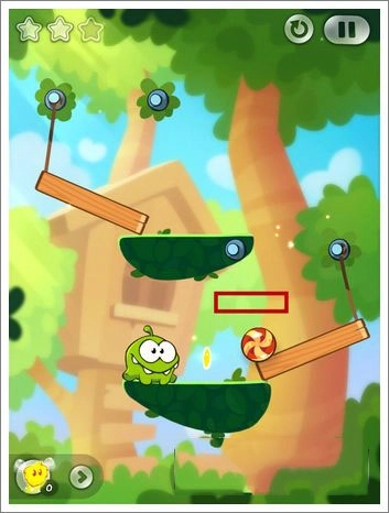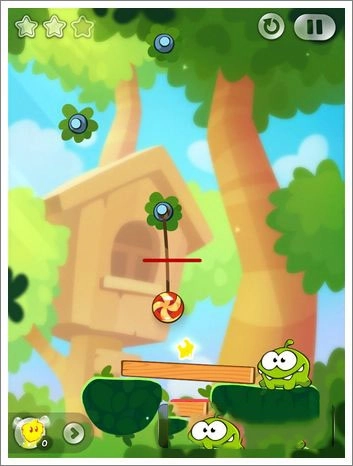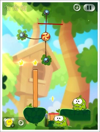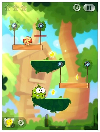 1、Roto能够把OmNom移动到接住糖果的最佳位置。OmNom吃起糖果来,真是美味可口!