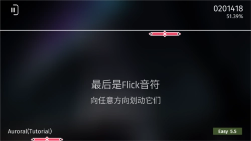5、该游戏的玩法与《Phigros》相近,玩家要依据音乐节奏,当音符抵达判定线时,对其执行点按、长按以及滑动等操作。