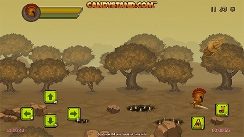 2、进入游戏后,左侧的上下左右按钮可操控角色移动,右侧的A键用于攻击,J键用于跳跃。