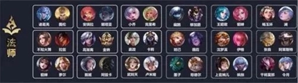 孙尚香-维奥莱特鲁班七号-约恩成吉思汗-琳蒂马克波罗-亥犽公孙离-兰铎虞姬-小丑黄忠-希露卡百里守约-苏后羿-拉维尔李元芳-菲尼克六、辅助英雄鬼谷子-卡瑞兹太乙真人-提米张飞-克莱斯东皇太一-艾瑞蔡文姬-佩娜庄周-查戈纳尔牛魔-朗博钟馗-夸克大乔-若伊瑶-芽芽