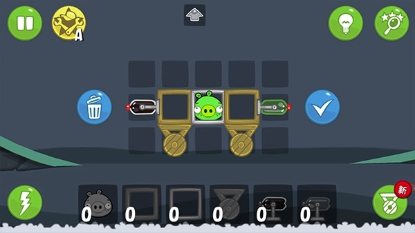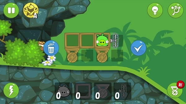 《捣蛋猪》(BadPiggies)是《愤怒的小鸟》开发者推出的全新作品——这是一款从小猪视角展开的游戏!玩家需要设计各种载具,让小猪通过飞行、爬行、滚动、旋转甚至撞击等方式,安全抵达地图终点。游戏主角是雀斑猪,它的声音和外形延续了《愤怒的小鸟》中的设定,但玩法截然不同:玩家不再是把猪当作攻击工具砸向目标,而是要操控这只绿皮雀斑猪,利用道具(BUG)收集星箱,完成关卡挑战。