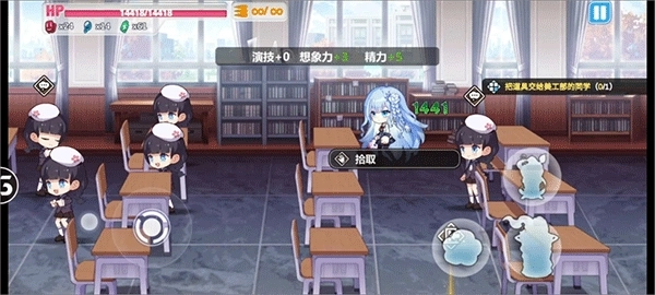 上楼梯后向左,会遇到B班的小艾,与其交流可以获得演技+3,精力+5的效果。