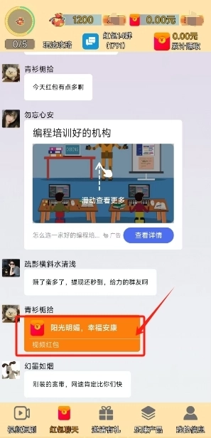 3、看见有人发红包,我们就点击红包。
