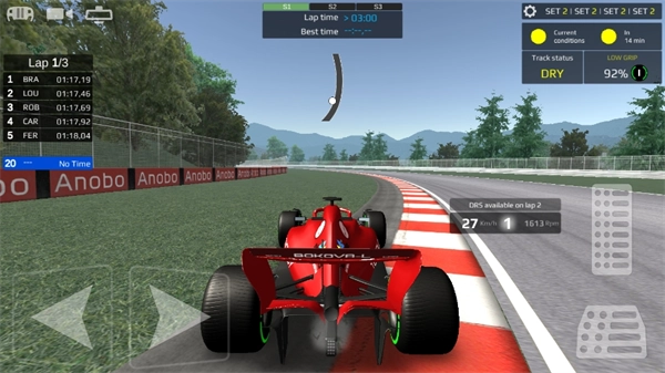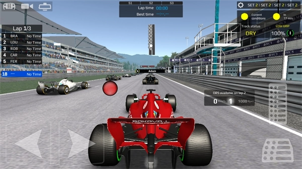 打开游戏界面进入车库,依据屏幕上呈现的赛车手基本信息(涵盖参赛场次),点击开始比赛前往现场,通过操控按键进行模拟驾驶。