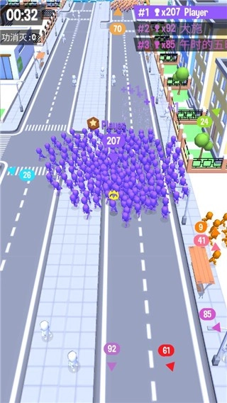 等自己的队伍壮大起来,就能去寻找其他队伍了。碰到人数少的,直接吞并他们;要是遇上大队伍,就得赶紧跑路。这个游戏的趣味性特别强,尤其是和朋友一起玩的时候,全程笑点密集,欢乐不断。